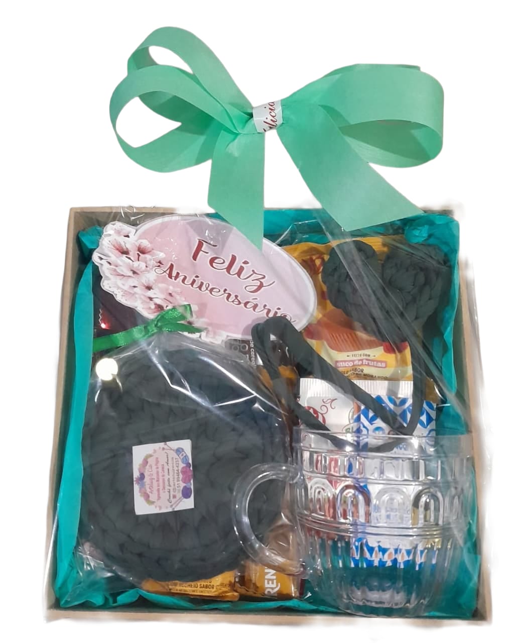 Um kit diferenciado com Marcador de Página e Descanso de Caneca feito a mão em crochê(cores variadas)