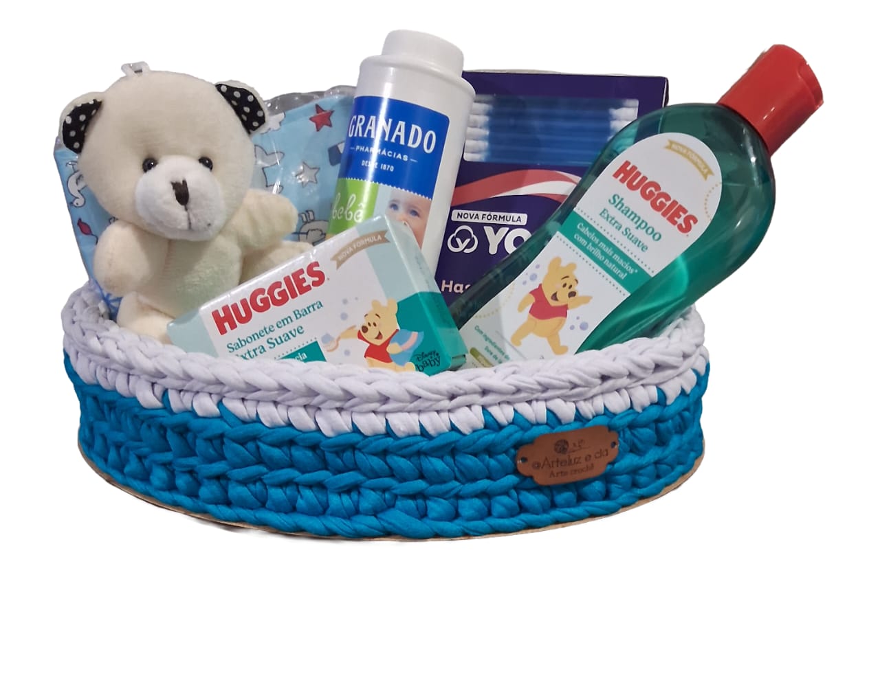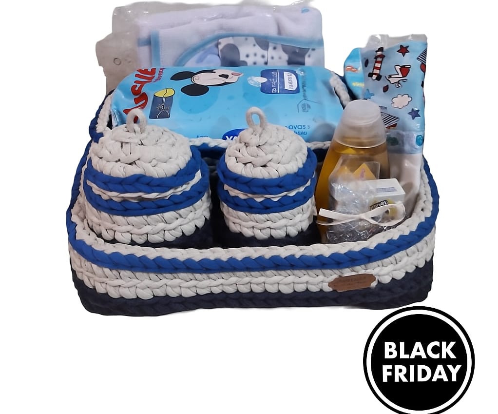 Nº 283 CESTO KIT HIGIENE MENINO EM CROCHÊ